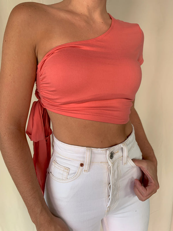 ALISE ONE SHOULDER TOP PEACH